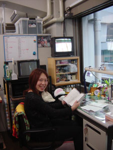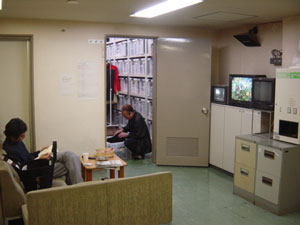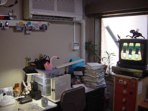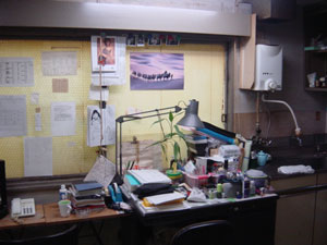 2つのスタジオの間に ある小部屋・・・ いつも煙草の煙がもうもう としてます・・・・ |