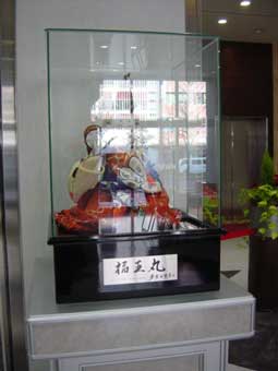CBC本館玄関にある不思議な 人形・・鼓を打ってます 夜見ると恐いでしょうねえ |