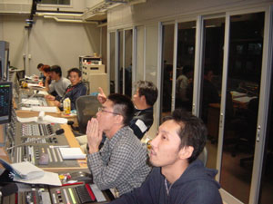 ここはスタジオの上にある 副調室です それぞれの部で厳しい チェックをされてます |