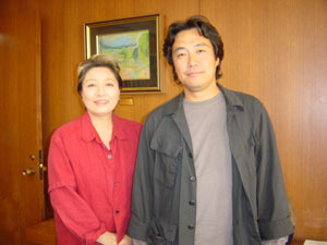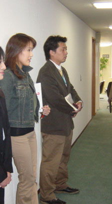 | 作家の畑嶺明先生から作品の説明・・・ 三林の右が息子役の大沢樹生さん 嫁の高橋かおりさん |