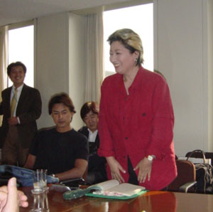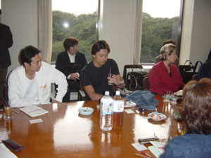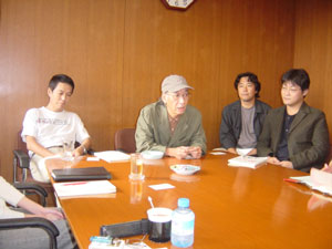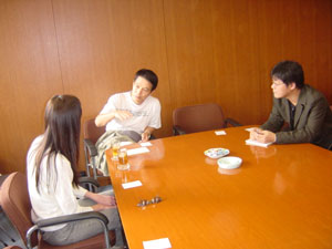 | チーフディレクターの小森氏と 畑先生と高橋さんがなにやら打ち合わせ |