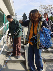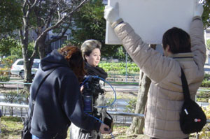 初めてのロケで、何をしていいのか 解らずに・・・ぼーぜんとしている のは大道具の大沼さん |