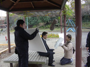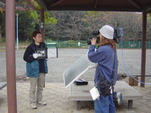 ロケではみんな協力して いるのがよくわかります ベテラン久保田さんが! |