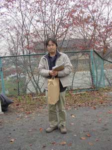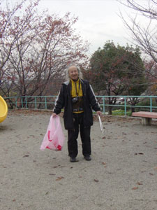 | ホームレス役の人・・・? 美術の伊藤さんが公園をお掃除 |
