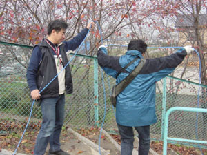 | 協力はこちらも! カメラの南條さんがケーブルを |