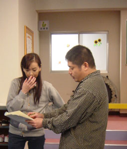 演出補の 青山貴洋さん 幼稚園児に大人気! |
