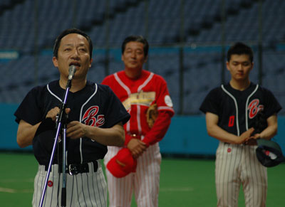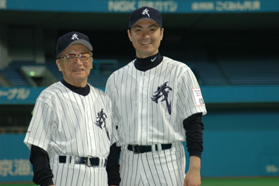 なんと!キャッチャーは梨田さん 人間国宝の特権! |